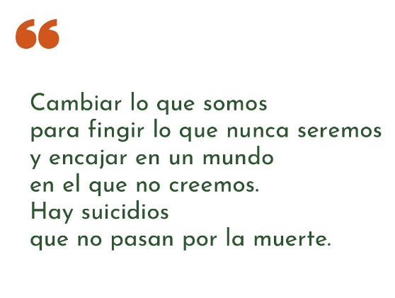 No es vida tener que fingir lo que no se es a cada paso, sólo para encajar en lo que otras personas esperan de nosotras.
