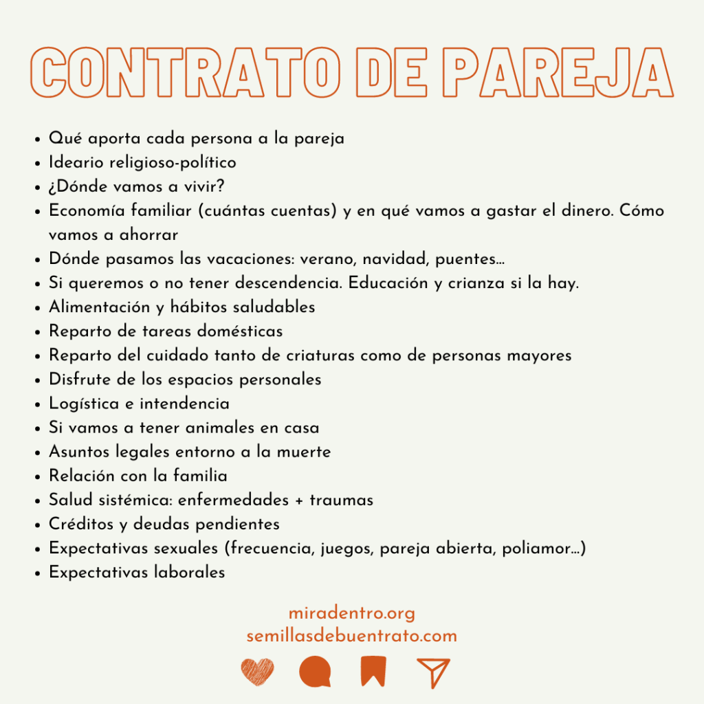 Toda pareja es contractual y deberíamos hacer una revisión al menos una vez al año, como si fuera una ITP (inspección técnica de la pareja)