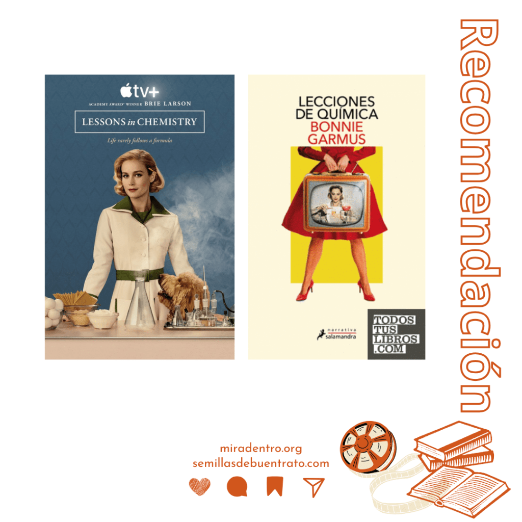 Algo parecido a volver a conectar con nuestra misión es lo que le pasa a Elizabeth Zott en Lecciones de química de Bonnie Garmus o en su adaptación en la serie Cocina con química. Una mujer que tiene que demostrar todo el santo día lo que vale en un mundo de hombres que la ningunea, la humilla, la infantiliza…vamos, lo habitual cuando destacas. La serie, que es más visual lo muestra a través de pequeños gestos y desplantes que tiene que sufrir e ignorar para conseguir lo que quiere. Se ha marcado una meta y no se lo van a poner fácil: no la tienen en cuenta por no tener un doctorado, por más que sepa más que ellos, le roban el trabajo, la rebajan a hacer el café del departamento, la degradan…vamos, una joya de compañeros y compañeras. Ellas, casi todas secretarias en aquella época, no entienden que siga empeñada en ser química con lo mona que es y con lo que podría ganar con ello…