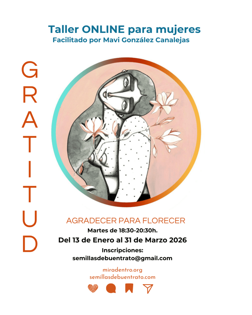 Gratitud es la invitación de este Enero, un taller para trabajar la gratitud a todos los niveles: personal, relacional y social. Siempre desde la mirada sistémica y de género y con la compañía especial del libro Las gratitudes de Delphine de Vigan y que nos servirá para ir construyendo el relato del taller a la vez que vamos trabajando en agradecer y abrir la mirada a todo lo bueno que llega a nuestra vida. A lo largo de tres meses y de forma semanal nos encontraremos los martes de 18:30-20:30h. para ir deshojando nuestra biografía en paralelo con el libro e aprendiendo este camino de gratitud.